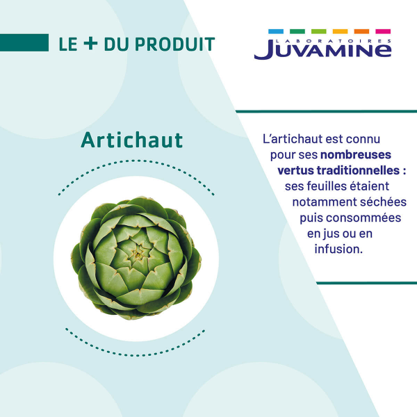 Ne peut remplacer une alimentation variée, équilibrée et un mode de vie sain. En complément de mesures diététiques à visée amincissante, SOS Minceur Artichaut des Laboratoires JUVAMINE contribuera à la réussite de votre programme minceur. Respecter la dose journalière conseillée.
