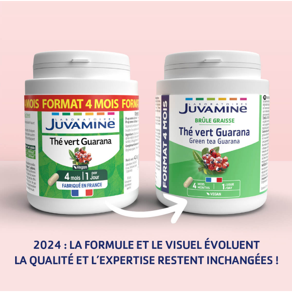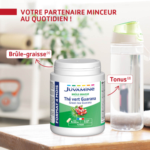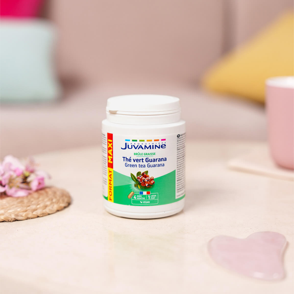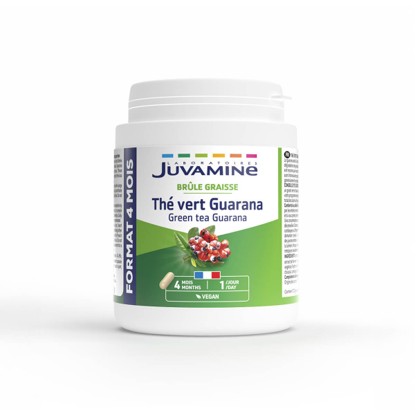Le Thé Vert Guarana, Format Cure longue, 120 gélules végétales" est un produit de qualité appartenant à la catégorie des brûleurs de graisses. Sa formule associe les bienfaits du thé vert à ceux du guarana pour offrir un soutien efficace dans le processus d'élimination d'eau des tissus et de dégradation des graisses. En effet, le thé vert favorise l'élimination d'eau des tissus et la dégradation des graisses, tandis que le guarana est reconnu pour ses vertus toniques et stimulantes. Ces propriétés sont particulièrement intéressantes pour pallier les baisses de forme qui accompagnent généralement les régimes.