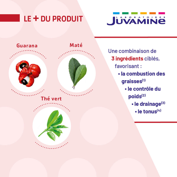 - Le guarana est traditionnellement reconnu pour agir sur la combustion "naturelle" des graisses et aide au contrôle général du poids,
