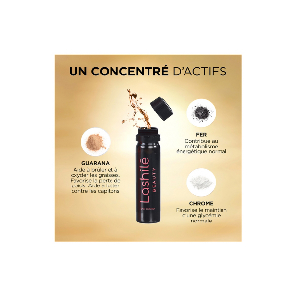 Eau ; Extrait sec de Guarana (Paullina cupana) ; Arome naturel mangue tropical ; Arome naturel peche ; Acidifiant : Acide citrique ; Épaississants : Gomme d-acacia et de xanthane ; Fer (Fumarate de fer) ; Conservateurs : Sorbate de potassium Benzoate de sodium ; Édulcorants : Acésulfame K Sucralose ; Chrome (Picolinate de chrome).