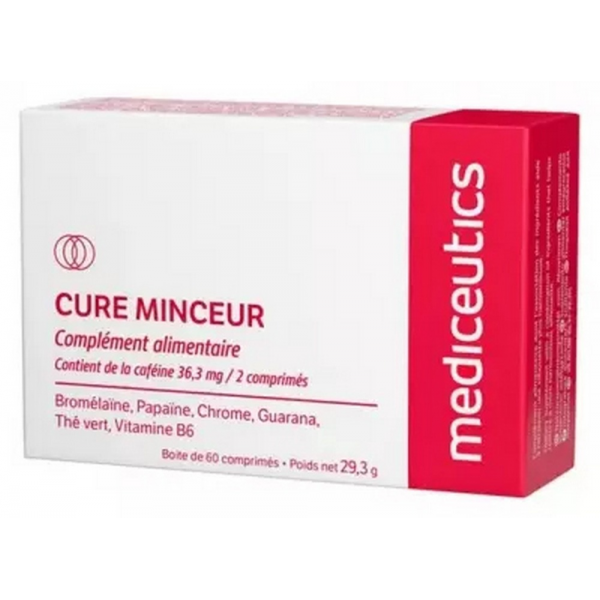 Cellulose microcristalline Phosphate tricalcique Bromélaine 90 mg Papaine (Sulfites) 90 mg Caféine 36 mg Extrait sec de Thé vert feuilles 20 mg (apport de 03 mg de caféine) Vitamine B6 14 mg (100% AR) Picolinate de Chrome 25 ?g (625% AR). Anti-agglomérant: Stéarate de magnésium. Agent d-enrobage: Hypromellose Cellulose Acides gras Rouge Ponceau 4R.