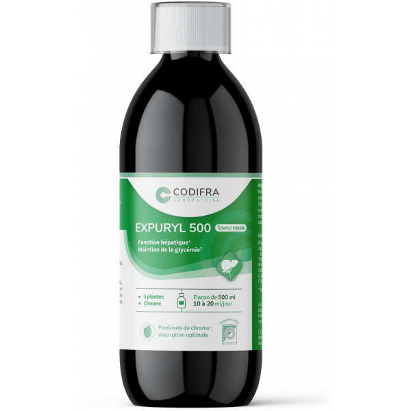 EXPURYL associe des plantes et du chrome à la fois sous forme de gélules d’origine végétale ou liquide en 500 ml au goût agréable et naturel de cassis. Ainsi, les complexes apportent de l’artichaut, qui participe au confort intestinal et facilite la digestion. De plus, le curcuma, pissenlit et l’artichaut contribuent au maintien d’une fonction hépatique normale. Le chrome et la cannelle participent au maintien d’une glycémie normale. Enfin, le thé vert contribue au maintien d’un taux normal de lipides sanguins et le pissenlit, l’artichaut et cassis contribuent au maintien d’une élimination rénale normale.