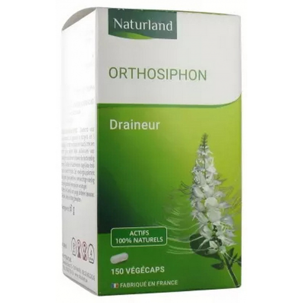 Le Naturland Orthosiphon 150 Végécaps est un complément alimentaire à base d'orthosiphon, reconnu pour favoriser les fonctions d'élimination de l'organisme. Ce produit contribue également au bon fonctionnement hépatique. Fabriqué en France, il est formulé avec de la poudre de feuille d'orthosiphon (Orthosiphon stamineus) et enveloppé dans une enveloppe d'origine végétale (hydroxypropylméthylcellulose). Chaque portion de 4 gélules contient en moyenne 1300 mg de poudre de feuille d'orthosiphon. Ce complément alimentaire appartient à la catégorie des draineurs, et est idéal pour soutenir une démarche de détoxification et favoriser le confort digestif.
