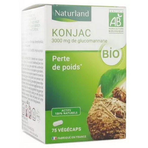 Le Naturland Konjac Bio 75 Végécaps est un complément alimentaire certifié Agriculture Biologique, spécialement conçu pour vous aider dans votre démarche de perte de poids. Fabriqué en France, ce produit à base de konjac se présente sous forme de gélules végétales adaptées aux régimes végans. En contrôlant la quantité de nourriture que vous consommez, le konjac contribue à la réduction de l'appétit, favorisant ainsi un processus naturel de perte de poids.