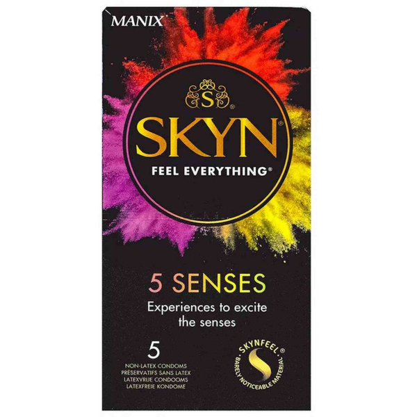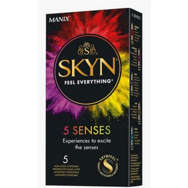 Les préservatifs SkynFeel de Manix sont conçus avec une matière presque imperceptible qui offre la sensation de ne rien porter. Manix Skyn 5 Senses contient 5 préservatifs pour 5 expériences qui vous procurent de nouvelles sensations et stimulent vos sens :