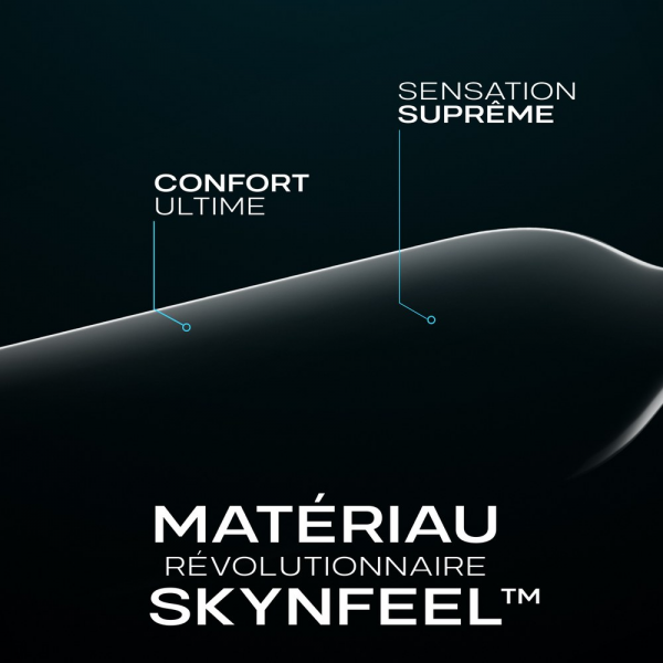 Préservatifs ultra-fins sans latex en polyisoprène SKYNFEEL, texture lisse, forme droite avec réservoir, version extra lubrifiée pour une sensation plus fluide et enveloppante. En savoir +