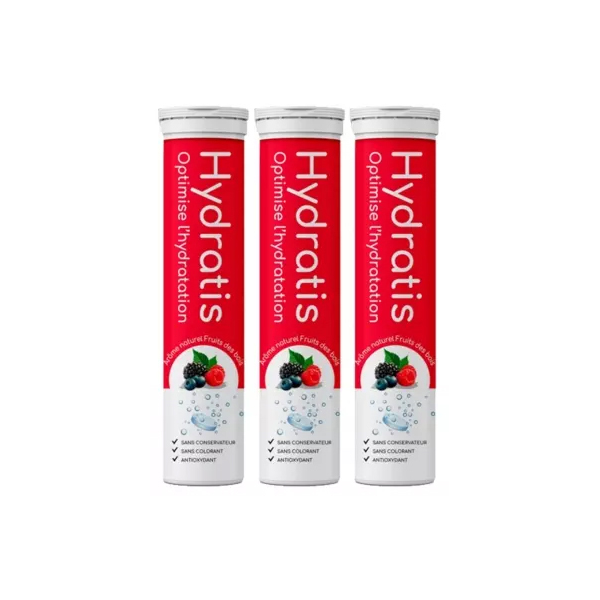 Le coffret Hydratis, comprenant 3 tubes de 20 pastilles effervescentes, est un complément alimentaire formulé pour apporter de l'énergie par l'hydratation. Sa composition soigneusement élaborée optimise l'assimilation des liquides, facilite la récupération musculaire en soulageant les symptômes de crampes et courbatures, tout en réduisant la fatigue. Enrichi en magnésium, potassium, zinc, manganèse et électrolytes, il offre une solution complète pour maintenir l'équilibre électrolytique.