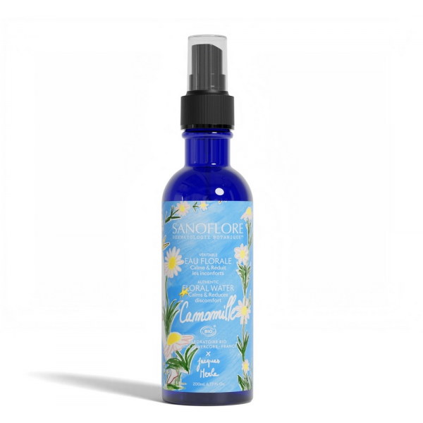 Extraites par distillation, les essences de plantes officinales bio sont jusqu'à 100 fois plus riches en molécules actives que les actifs de synthèse de la cosmétique. Elles ouvrent de nouvelles frontières en ce qui concerne l'efficacité et la sensorialité des produits Sanoflore. La Véritable Eau Florale Camomille Noble Bio est adoucissante et apaisante comme une étoffe chargée de tendresse, elle est l'ultime alliée des peaux sensibles. Ses propriétés éclaircissantes en font également le partenaire des cheveux blonds ou ternes ayant soif de lumière.