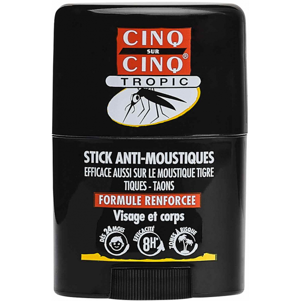 Arrêtez les moustiques et les insectes piqueurs avant qu’ils ne vous piquent avec Cinq sur Cinq Stick Tropic. Sa formule contient 35% d’icaridine et de l’huile d’eucalyptus citriodora assurant une protection pendant 8h dans les zones à risques. Ce stick convient aux adultes et aux enfants à partir de 2 ans. Il est efficace contre les taons, tiques et les moustiques et son format de poche permet de l’emmener partout.