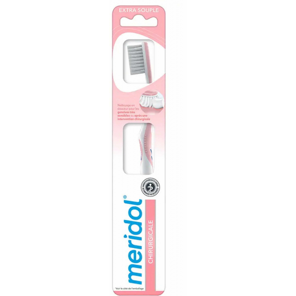 Après opération, utilisez la brosse à dents Meridol Chirurgicale. Ses brins sont microfins et ultradoux. Elle permet un nettoyage doux mais efficace. Elle protège les gencives sensibles et douloureuses.