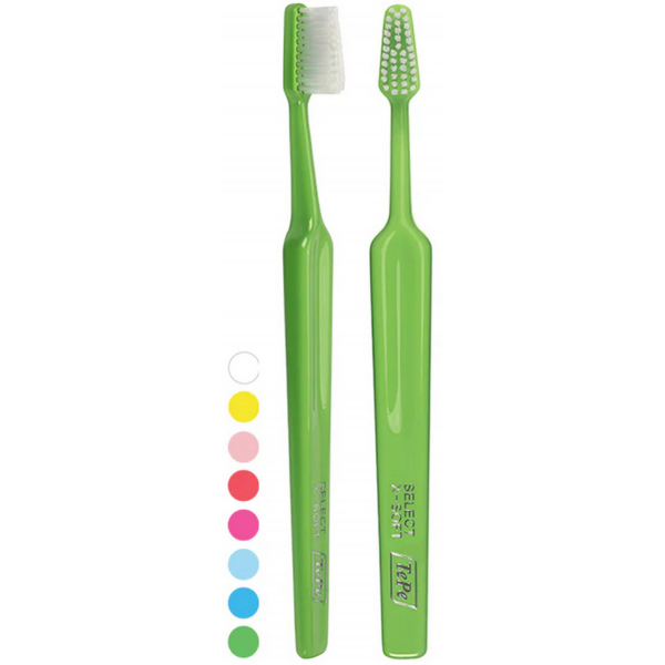 La brosse à dents Select Compact Souple TePe est dotée de brins arrondis extra souples qui atteignent facilement les zones difficiles pour un nettoyage en douceur et complet. Sa petite tête de brosse triangulaire permet un accès facile. Design classique et fonctionnel. Pour encore plus d'efficacité, il est possible de couder la tête de la brosse à dents pour lui donner la forme souhaitée, en la passant sous l'eau chaude.