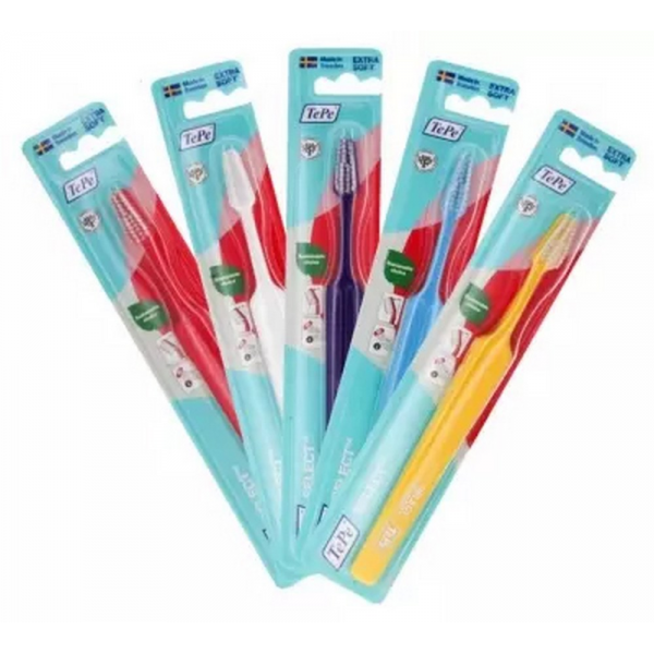 La brosse à dents Select Regular Extra-Souple TePe est dotée de brins arrondis extra souples qui atteignent facilement les zones difficiles pour un nettoyage en douceur et complet. Design classique et fonctionnel. Pour encore plus d'efficacité, il est possible de couder la tête de la brosse à dents pour lui donner la forme souhaitée, en la passant sous l'eau chaude.