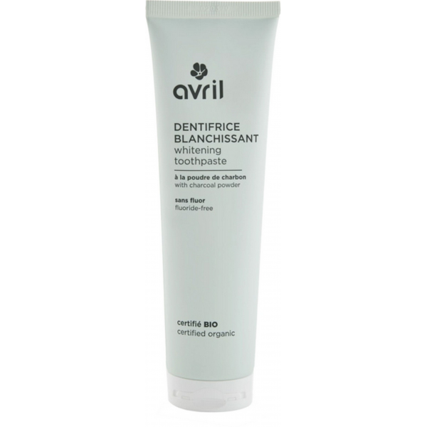 Le dentifrice blanchissant bio de Avril est formulé avec de la poudre de charbon au pouvoir abrasif qui permet de nettoyer les dents et d’améliorer leur blancheur. Il contient aussi de l’aloé vera bio pour apaiser les gencives. Son goût naturel de menthe contribue à une haleine fraîche. Sans fluor. Formule vegan et certifiée Bio par Ecocert.