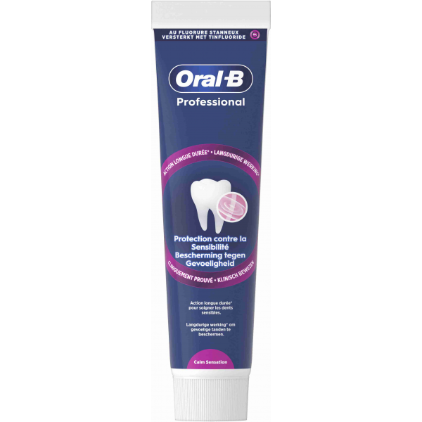 Dentifrice Oral-b Professional Protection spécialement formulé pour apaiser la sensibilité dentaire et rendre le brossage plus confortable, tout en offrant une sensation de fraîcheur agréable et une protection antibactérienne. En savoir +