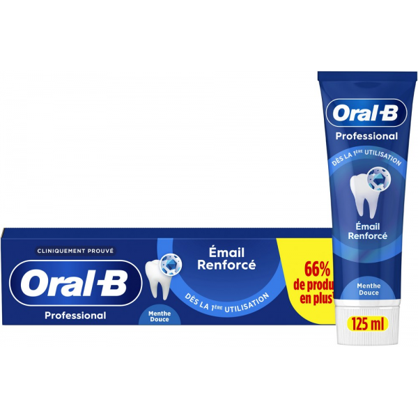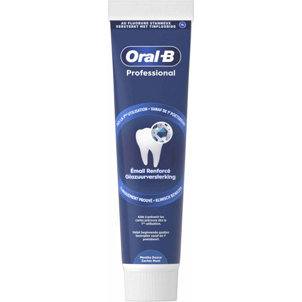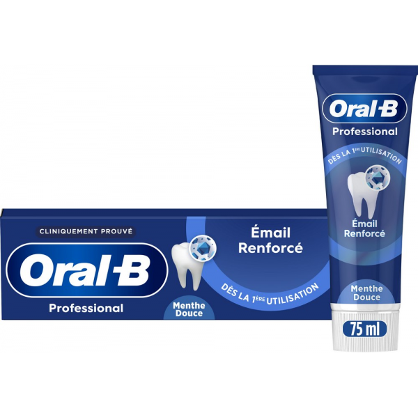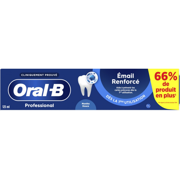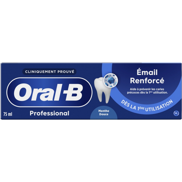 Le dentifrice Oral-B Professional Émail Renforcé au goût de menthe douce aide à renforcer l’émail des dents et à prévenir l’apparition des caries dès la première utilisation. En savoir +