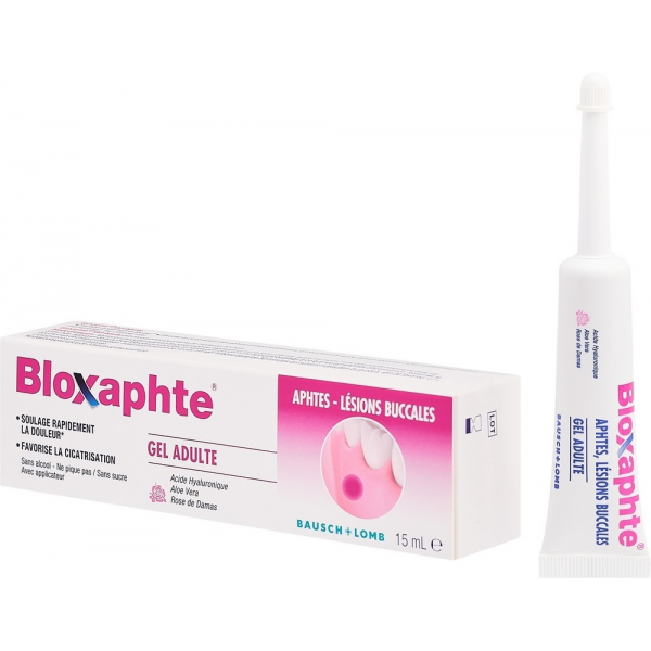 Douloureux et gênants, les aphtes sont une inflammation de la muqueuse buccale. Pour vous soulager rapidement et favoriser la guérison d’un aphte, Bloxaphte est un soin formulé sans alcool à appliquer localement. Il contient de l’aloe vera apaisant et hydratant, de l’acide hyaluronique pour réduire la douleur et la rose de damas vient compléter la formule grâce à ses propriétés décongestionnantes.