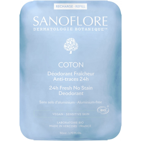 Sanoflore Déodorant Fraîcheur 24h Coton Recharge Bio 50 ml