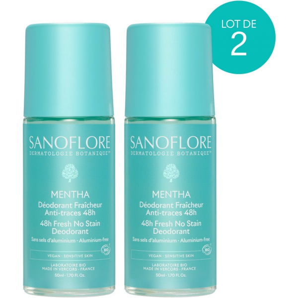 Sanoflore Déodorant Fraîcheur 48h Mentha Roll-On Bio 2 x 50 ml