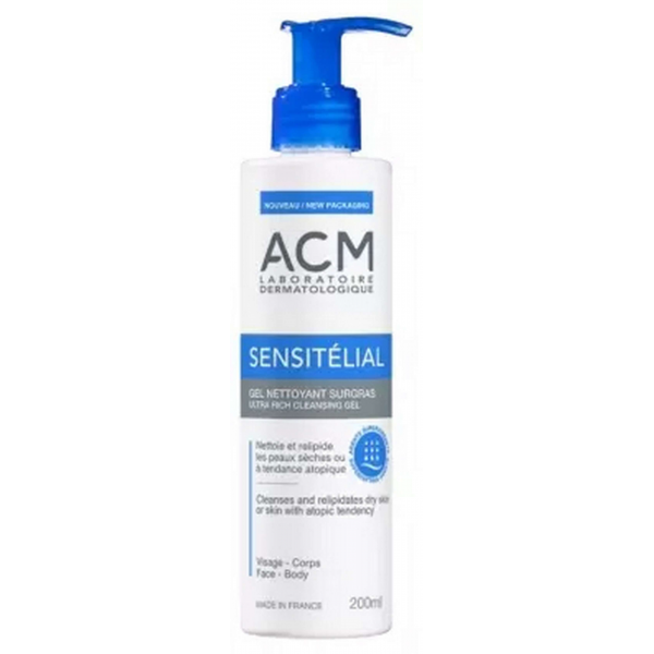 Le gel nettoyant surgras Sensitélial de Laboratoire ACM est spécialement conçu pour la toilette quotidienne des peaux très sèches ou à tendance atopique, qu'il s'agisse d'enfants ou d'adultes. Sa formule douce, enrichie en agents surgraissants, respecte le pH de la peau et préserve le film hydrolipidique, permettant un nettoyage en douceur sans agresser l'épiderme. Fabriqué en France, ce gel nettoyant de 200 ml offre une solution idéale pour les peaux sensibles.