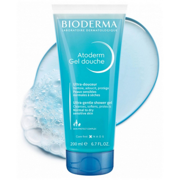 Le produit Gel Douche Ultra-Douceur Atoderm de Bioderma est un gel douche sans savon au parfum délicat et convient à toute la famille de l'enfant à l'adulte. Spécifiquement conçu pour préserver, nourrir et entretenir les peaux normales à sèches, le produit Bioderma Atoderm Gel douche protège efficacement votre peau en apportant toute la douceur nécessaire et ne réduisant les tiraillements provoqués par l'assèchement de l'épiderme. Par la présence dans sa composition du complexe Skin Protect qu'il renferme, le produit Bioderma Atoderm Gel douche sans savon contribue à favoriser la production d'acide hyaluronique, sécrété naturellement par notre corps. Avec l'utilisation du produit Bioderma Atoderm Gel douche, votre peau retrouve toute son hydratation et l'épiderme est protégé durablement. Ses actifs contribuent à rétablir l'équilibre ecobiologique de la peau afin de la préserver de manière durable et lui redonner toute son élasticité et sa souplesse. La texture du gel Atoderm est moussante et onctueuse et vous procure un véritable moment de relaxation sous la douche. Ce produit est vendu dans un flacon-pompe en matériau recyclable à un prix très compétitif. L'avis d'un dermatologue ou l'avis d'un pharmacien en pharmacie pourra vous être apporté si vous avez la moindre question.