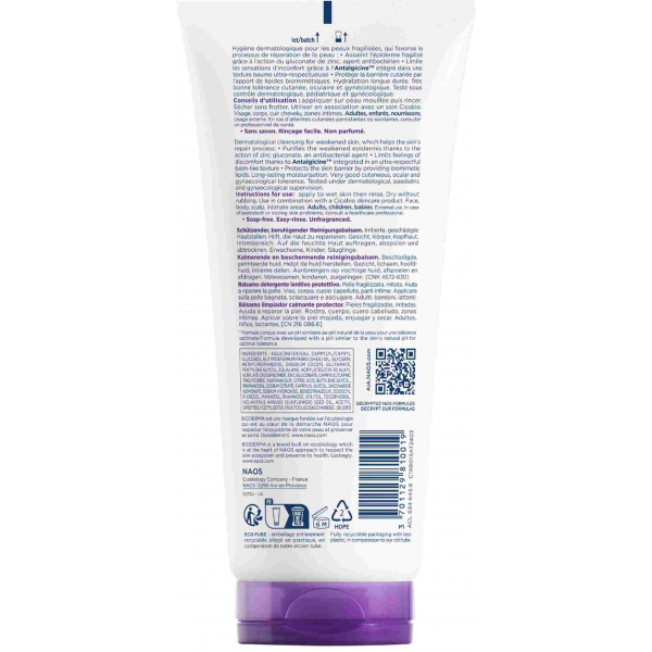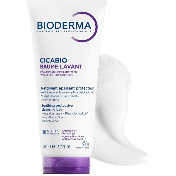 Formulé avec un pH physiologique, le baume lavant Cicabio Bioderma intègre un agent antibactérien, le zinc, ainsi que des tensioactifs doux pour éliminer les impuretés, réduisant ainsi les risques d'infection et favorisant le processus de cicatrisation. La technologie AntalgicineTM, inspirée d'un ingrédient apaisant naturel de la peau, est également présente. Le baume renferme des lipides biomimétiques issus de l'huile de karité et du squalane, qui agissent comme une barrière protectrice contre le dessèchement cutané. Enfin, pour maintenir l'hydratation, la glycérine est associée à des sucres hydratants.