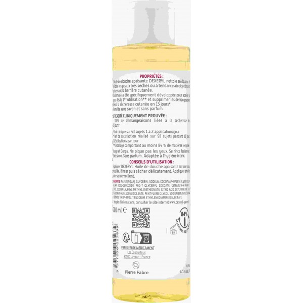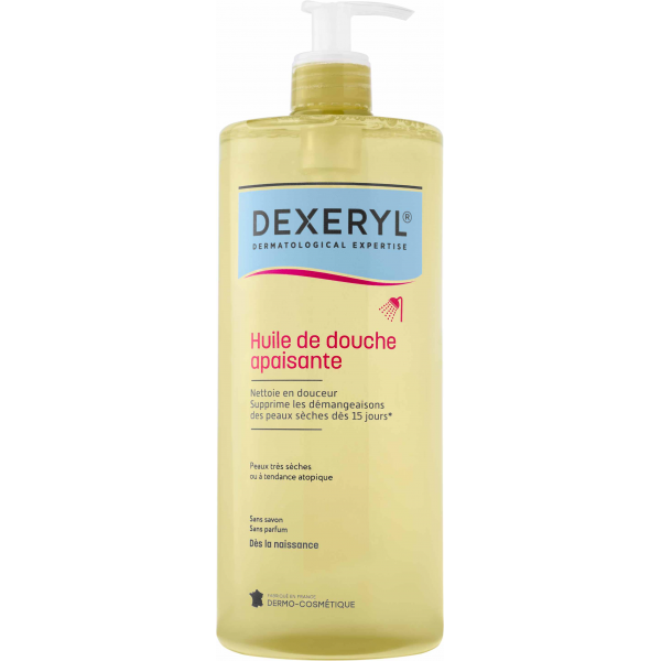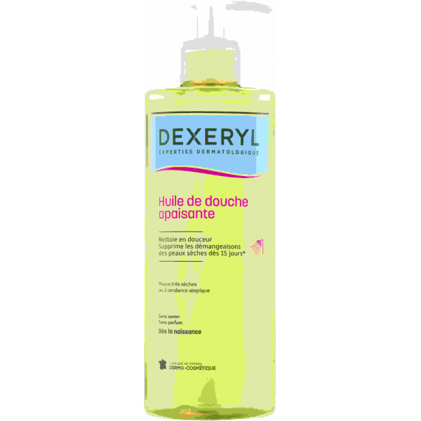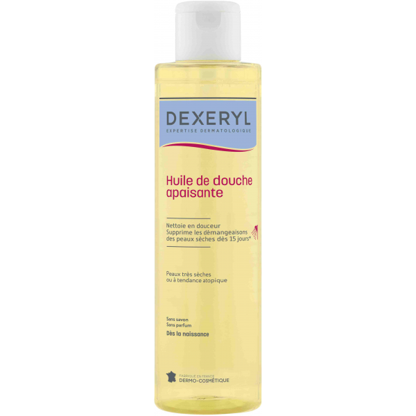 L’huile de douche Dexeryl est un soin nettoyant et nourrissant destiné aux peaux très sèches et atopiques de toute la famille.
