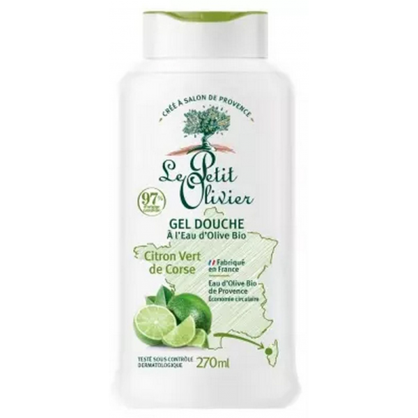 Le Petit Olivier Gel Douche à l'Eau d'Olive Bio et Citron Vert de Corse 270 ml