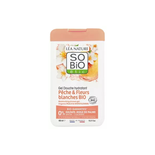Léa Nature SO BIO étic Gel Douche Hydratant Peche & Fleurs Blanches Bio 450 ml