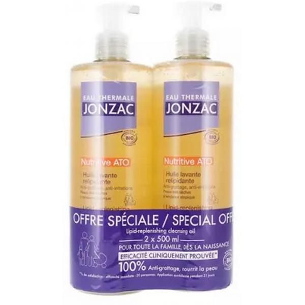 Le lot de 2 huiles lavantes relipidantes 500ml X2 est parfait pour toute la famille, des nourrissons aux adultes. En effet, cette huile douce nettoie, apaise et nourrit immédiatement les peaux très sèches à tendance atopique, sujettes aux sensations de démangeaisons. Grâce à ses propriétés anti-grattage et anti-irritations, elle protège quotidiennement la peau contre le dessèchement et les agressions extérieures. Avec sa formule à base de 10% d'eau thermale de Jonzac apaisante, d'huile de noix de coco nourrissante et de glycérine végétale hydratante, cette huile relipidante est vegan, sans savon, sans sulfate, sans colorant, et possède un parfum haute tolérance, tout en ayant un pH physiologique.