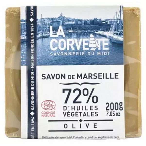 Le savon de Marseille Olive 200 g de La Corvette est un produit phare de la catégorie des savons/pains. Fabriqué à Marseille selon la méthode traditionnelle de cuisson aux chaudrons, ce cube de savon est réalisé à base d'huile d'olive. Respectueux de l'environnement, il est apprécié pour sa biodégradabilité et son impact écologique positif. Sa formule hypoallergénique en fait un produit doux adapté à tous les membres de la famille, notamment aux personnes ayant une peau allergique, sensible ou irritée.