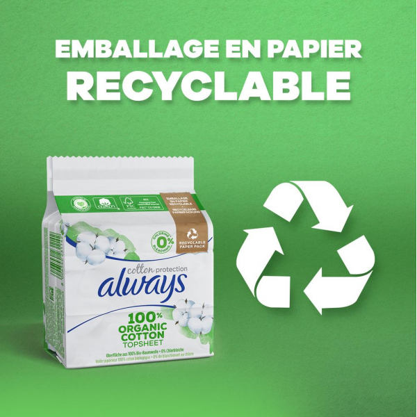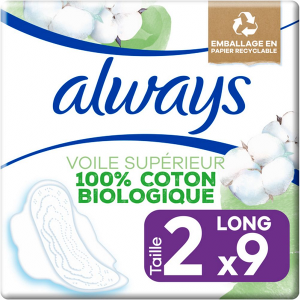 Les nouvelles serviettes Always Cotton Protection Long Plus sont conçues pour prendre soin de vous tout en préservant l'environnement. Grâce à leur voile supérieur en coton biologique et à leur emballage en papier recyclable, ces serviettes contribuent à réduire l'impact sur l'environnement. Sans parfum, sans colorant et sans blanchiment au chlore, elles ont été approuvées par les dermatologues de la SHA et certifiées par Cotton Inc. Leur cœur ultra absorbant transforme le liquide en gel pour une protection fiable en toute circonstance. De plus, les serviettes Always Cotton Protection Long sont polyvalentes et conviennent aux flux légers, moyens et abondants, s'adaptant à différents types de lingerie.
