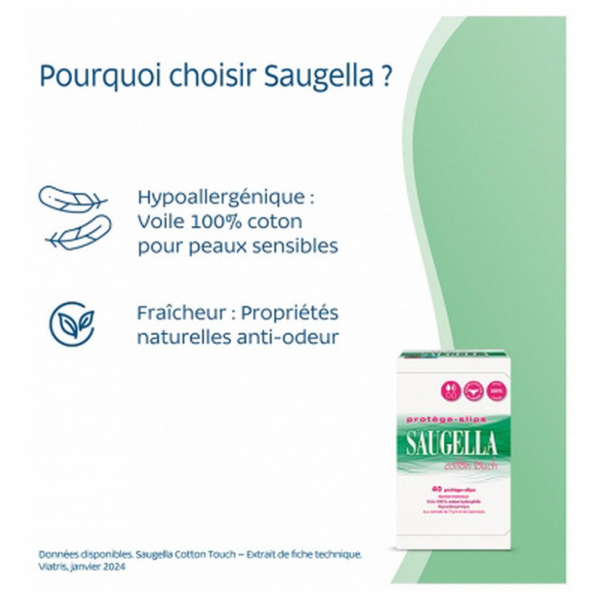 Saugella Cotton Touch est une solution pensée pour accompagner l’hygiène intime au quotidien en alliant douceur, confort et discrétion. Ces protège slips sont adaptés à un usage régulier et répondent aux besoins des femmes souhaitant une protection légère tout en respectant la sensibilité de la zone intime.