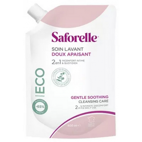 Le produit Saforelle Recharge Soin Lavant Doux est disponible dans un format éco-responsable et à un prix très attractif, cette recharge est idéale pour préserver la planète. Doux pour vous et aussi doux pour la planète, ce produit éco Saforelle en soin lavant gel à prix intéressant est constitué d'un emballage contenant presque 75 % de plastique en moins qu'un emballage standard. Si lors de l'utilisation de Saforelle soin lavant, vous constatez un quelconque effet indésirable, veuillez consulter et demander l'avis de votre médecin ou l'avis d'un pharmacien en pharmacie. Très facile à utiliser, comme un savon liquide ou gel douche, il vous suffit de l'appliquer sur la peau ou les muqueuses externes sous de l'eau claire. Faites ensuite mousser le gel puis rincez-vous suffisamment à l'eau claire et évitez le contact direct avec les yeux. Ce produit s’utilise facilement quotidiennement en période d’irritations de la peau ou des muqueuses.