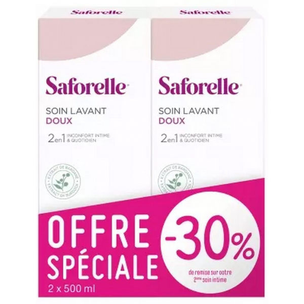 Saforelle Soin lavant doux est disponible à l’achat sur notre site et en pharmacie à l’unité ou en lot de 2.