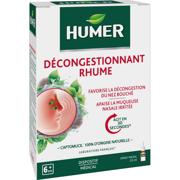 Humer Décongestionnant Rhume permet de fluidifier la muqueuse, déboucher le nez grâce à son action hypertonique et apaiser la muqueuse nasale irritée.