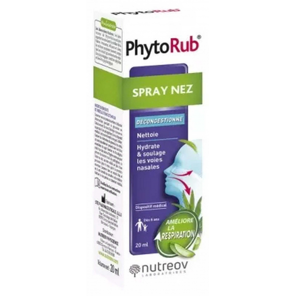 Nutreov Phyto-Rub Spray Nez 20 ml est un décongestionnant nasal qui favorise l'élimination des sécrétions nasales en excès.