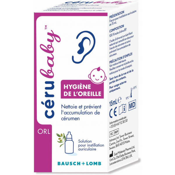 Pour une hygiène parfaite des oreilles de bébé, Cerubaby est une solution auriculaire destinée à nettoyer et à prévenir l'accumulation des bouchons de cérumen.