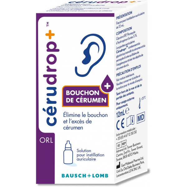 Cérudrop est un dispositif médical sous forme de solution auriculaire qui élimine le bouchon et l'excès de cérumen dans les oreilles.