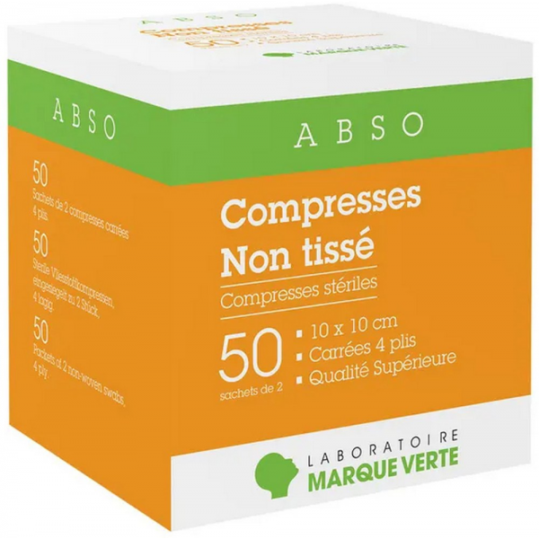 Marque Verte Abso Compresses Stériles Non Tissé 10 cm x 10 cm x 50