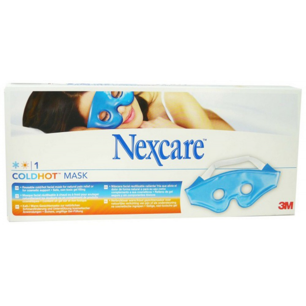 Nexcare Cold Hot Mask est un masque visage réutilisable à chaud comme à froid. Il soulage la douleur et peut être aussi utilisé pour préparer la peau aux soins. Ce masque s'utilise à froid pour vous soulager des maux de tête, migraines, diminuer les poches et les cernes sous les yeux et peut être utilisé à la suite d’un acte esthétique. L'utilisation à chaud permet de diminuer et de soulager l'inflammation des sinus, traiter la congestion nasale, et d'améliorer l'efficacité de certains produits cosmétiques.
