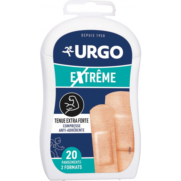 Ces pansements Urgo permettent, une fois la plaie nettoyée et désinfectée, de la protéger des éléments extérieurs et des chocs. Ainsi, ils participent à une bonne cicatrisation de la plaie. Les pansements Extrême Urgo disposent d'un support micro-aéré au pouvoir adhésif élevé, ce qui garantit une excellente tenue du pansement. Par ailleurs, ce pansement est indéchirable et résiste ainsi à toutes les situations. Sa compresse anti-adhérente ne colle pas à la plaie et offre un retrait atraumatique lors du changement de pansement. Les pansements Urgo Extrême sont proposés en deux versions : sous forme de pansements prédécoupés, prêts à l'emploi et faciles à mettre en place (deux formats : 3,4 x 7,2 cm et 2 x 7,2 cm) ou sous forme de bande à découper avec des ciseaux afin d'adapter la taille du pansement à celle de la plaie.