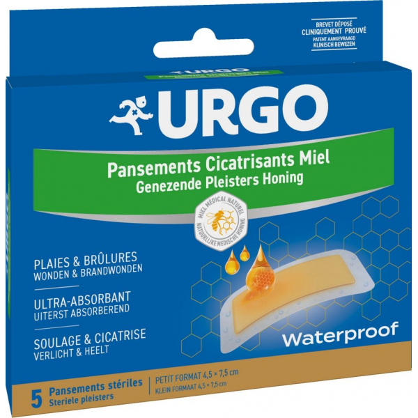 Pour aider à cicatriser les plaies et les brûlures, Le laboratoire Urgo propose les pansements cicatrisants au miel.