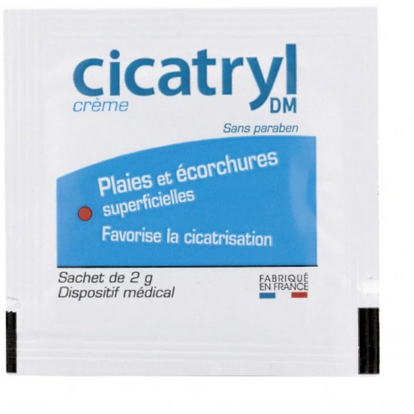 Sous forme de sachets-dose, la Crème Cicatryl du laboratoire Pierre Fabre est une crème cicatrisante très efficace pour apporter les premiers soins en cas de petites plaies superficielles, à toujours avoir dans parmi les accessoires de sa trousse de secours ou trousse à pharmacie car facile à transporter grâce à un conditionnement en 10 petits sachets individuel à usage unique.