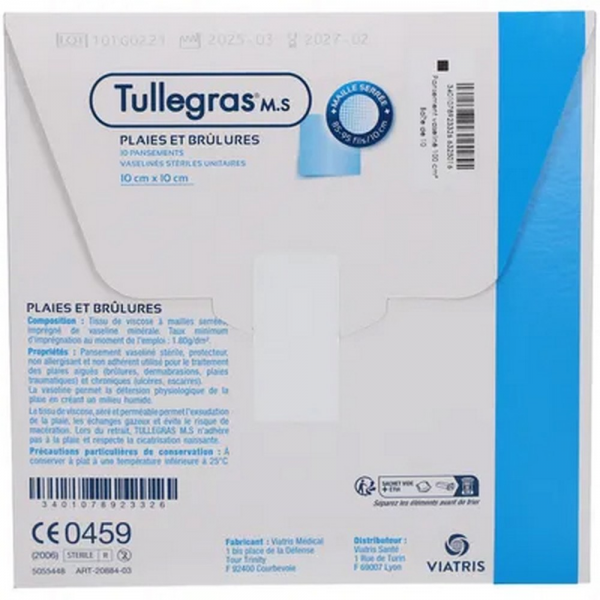 Le pansement gras stérile vaseliné Tulle Gras est protecteur et apaisant. Il facilite la cicatrisation des plaies superficielles : écorchures, déchirures, brûlures thermiques ou chimiques, des plaies chroniques : escarres, ulcères de jambes et est indiqué pour le recouvrement des plaies telles que site de prélèvement de peau, chirurgie plastique et esthétique. Le support en tulle 100% coton à larges mailles bloquées, imprégnées d'un excipient gras ne présentent pas d'adhérence à la plaie lors du renouvellement et peut être associé à divers pansements secondaires.