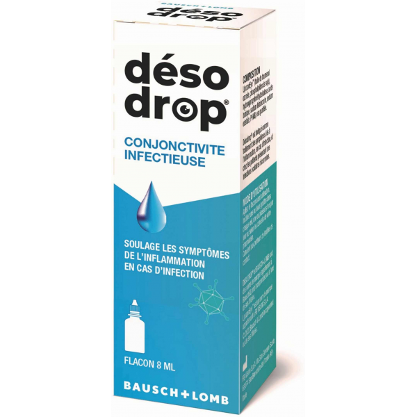 Bausch & Lomb Desodrop Collyre 8ml est une solution ophtalmique protectrice et lubrifiante. En savoir +