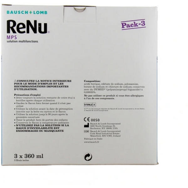 La solution ReNu Multifonctions est une solution stérile, tamponnée et isotonique utilisée pour nettoyer, décontaminer, lubrifier, rincer et conserver toutes les lentilles souples.