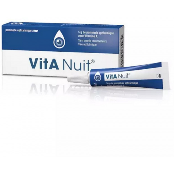 Le dispositif médical VitA Nuit est destinée à l’amélioration du film lacrymal et la protection de la surface de l’œil. Il s'agit d'une pommade ophtalmique contenant de la vitamine A.