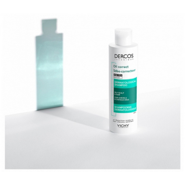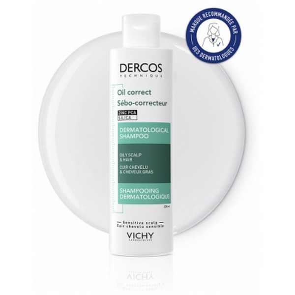 Vichy Dercos Sébo-Correcteur Shampooing Traitant 200 ml associe quatre tensio-actifs dosés pour limiter la migration de sébum sur la fibre capillaire et préserver l'intégrité du cuir chevelu.