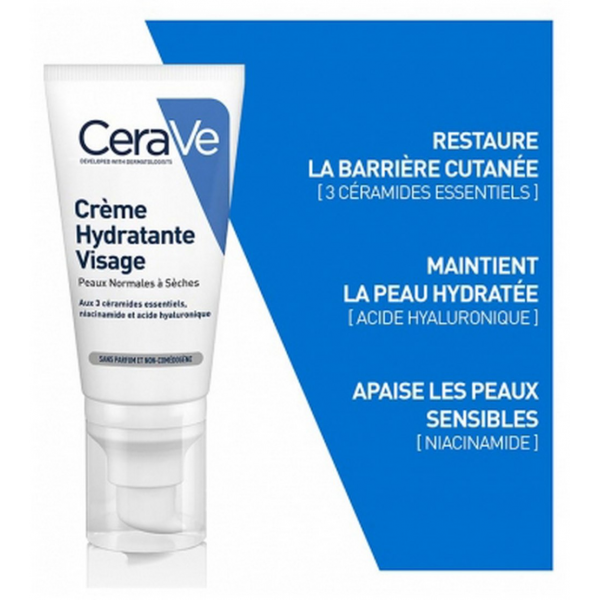 La Crème Hydratante Visage CeraVe (52 ml) est formulée avec de l’acide hyaluronique et trois céramides essentiels, éléments indispensables à la restauration de la barrière cutanée. Sa texture légère et non grasse pénètre rapidement, procurant une hydratation continue tout au long de la journée. Elle protège la peau des agressions extérieures et prévient la déshydratation pour un teint doux, souple et éclatant.
