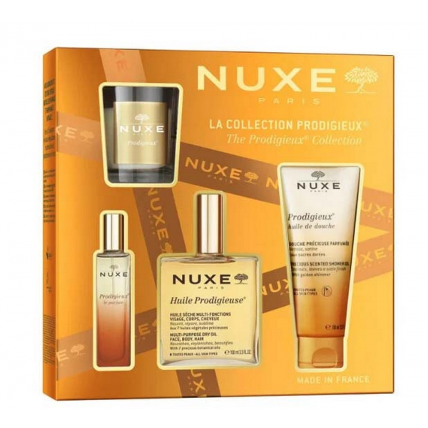 Le Coffret Nuxe Prodigieux, une véritable ode à la beauté et au plaisir olfactif. Ce coffret réunit les essentiels de la gamme culte Prodigieuse : l’huile sèche multi-fonctions, l’huile de douche satinante, le parfum et une bougie délicatement parfumée. Ensemble, ils forment un rituel complet pour nourrir, illuminer et parfumer la peau tout en créant une atmosphère de bien-être.